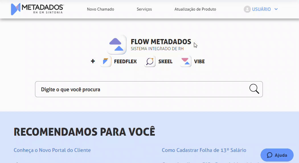 Este é o nosso canal oficial. Mensalmente, próximo ao dia 15, enviamos comunicações para todos os nossos clientes com as informações de todas as áreas da Metadados. Confira seu e-mail e, caso não esteja recebendo, comunique ao seu analista de sucesso do cliente pelo e-mail cs@metadados.com.br.